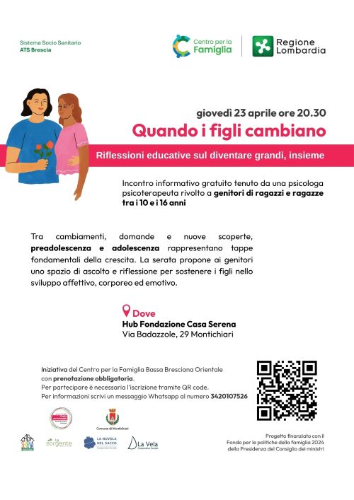 Giovedì 23 aprile a Montichiari un incontro informativo gratuito rivolto ai genitori di ragazzi e ragazze tra i 10 e i 16 anni, organizzato dal Centro per la Famiglia della Bassa Bresciana Orientale