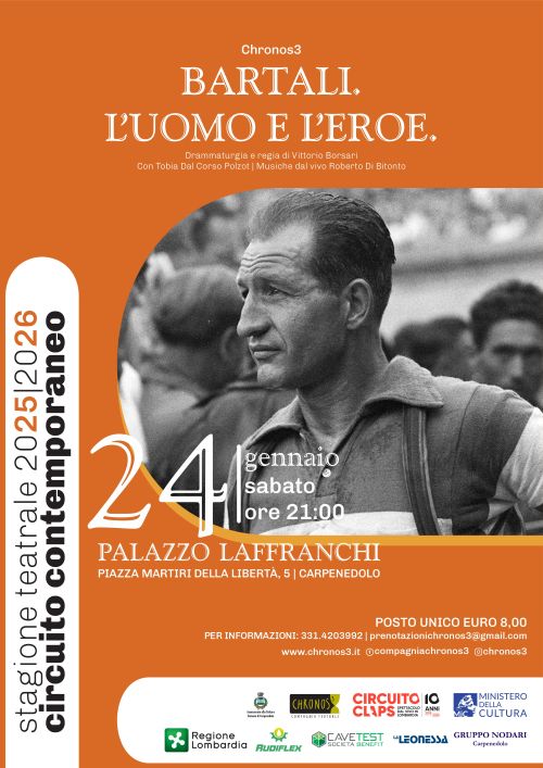 Riprende la stagione teatrale promossa da "Chronos3": in cartellone uno spettacolo dedicato a Gino Bartali, grande ciclista ma non solo......