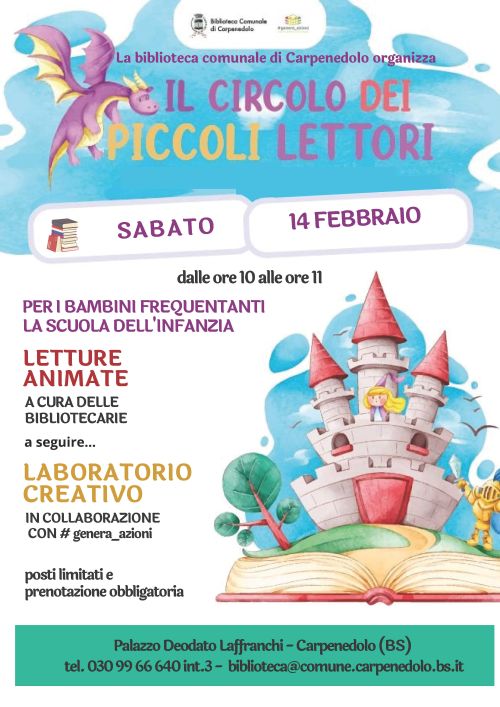 Partecipazione gratuita con prenotazione obbligatoria allo 030/9966640 (interno 2) o biblioteca@comune.carpenedolo.bs.it