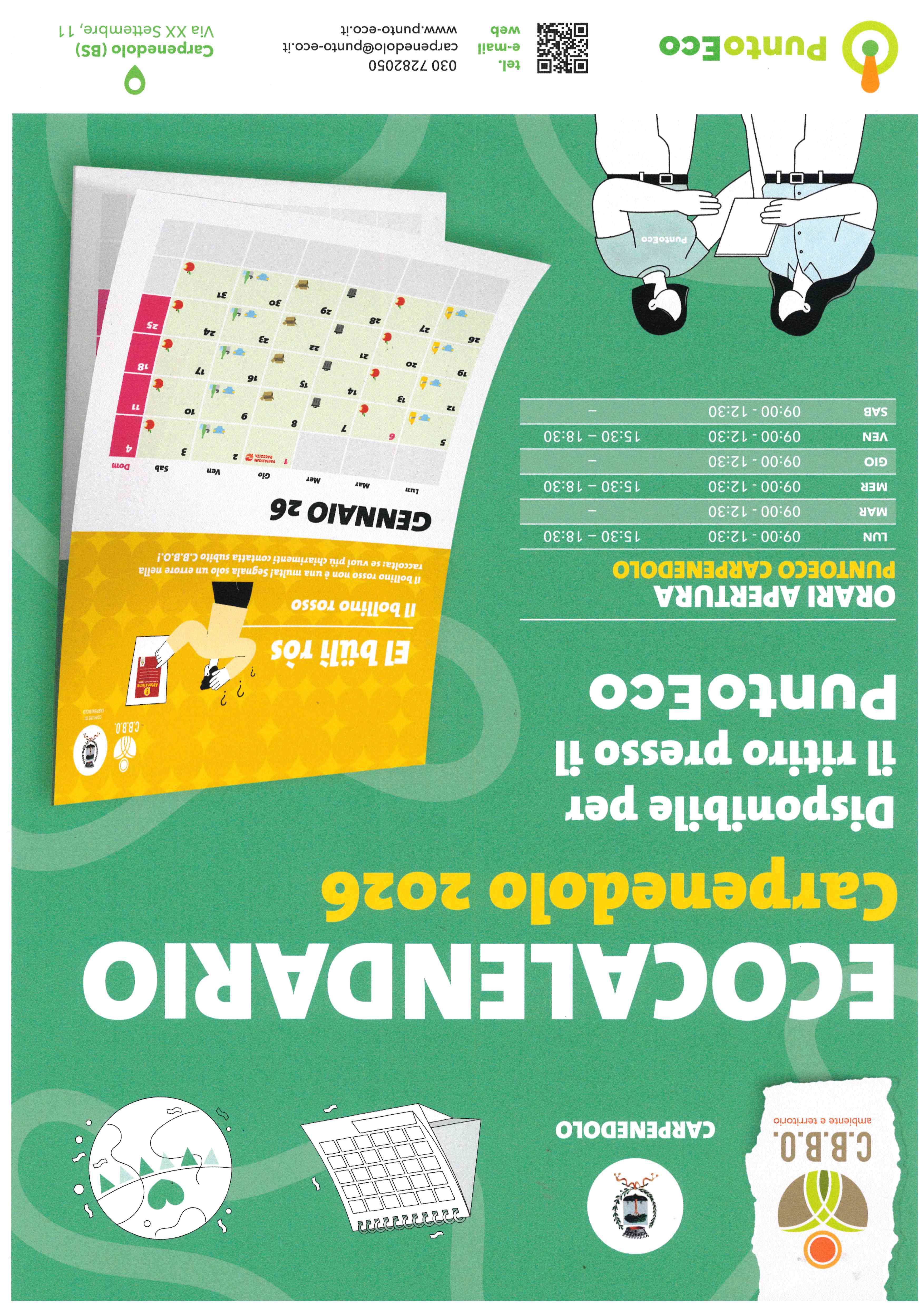 L'ECOCALENDARIO 2026 è disponibile per il ritiro presso il PuntoEco o consultabile nell'allegato a questo avviso.
