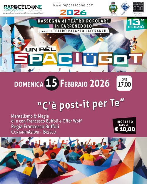 Lo spettacolo è il secondo appuntamento della Rassegna di Teatro Popolare BEL SPACIUGOT curata e organizzata dalla Compagnia Teatrale RAPOCELDONE di Carpenedolo